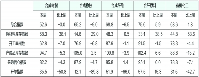 本周CCPI综合指数为66.7,比上周下降0.1,各分项指数与上周比:原材料库存指数下降36.4,开工率指数下降3.6,产成品库存指数下降3.1,采购信心指数下降2.3,开单指数下降36.6。 说明:为了更好地掌握和预测石化行业运行动态,化工销售设立了 “化工产品采购指数(Chemical Customer Purchasing Index,CCPI)”, 通过对化工行业下游样本客户的开工情况、库存情况、开单情况、采购信心等关键环节进行定量监测,来预测客户的采购需求,是一个综合性的量化指标体系,共涉及化工样本客户535家、化工下游行业76个、27个大类产品。 主要指标计算逻辑如下:综合指数=50%×下游开工率指数+10%×开单指数+15%×采购信心指数+15%×(100-原材料库存指数)+10%×(100-产成品库存指数),各分项指数由报告期数据比基期数据得出。其中基期数据参照各产品各行业正常运行情况确定,当下游运行正常时,各分项指数为100,综合指数为75。 2022年6月13日~6月19日化工销售CCPI分产品指数情况