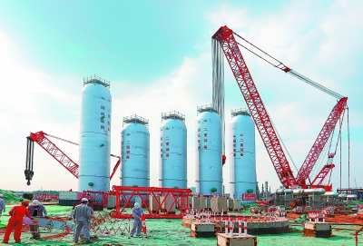 这5台渣加反应器总重超过5000吨,属超限、超重设备,对地基承受力要求非常高,吊装难度高、风险大。为此,扬子石化联合施工、监理等单位,经过多方论证、实地考察,不断优化完善吊装方案,强化全过程安全监管,确保了大件设备一次吊装成功。