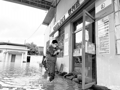 受强降雨影响,6月13日湖南永州石油江华沱江加油站发生内涝。公司第一时间启动应急预案,切断电源,转移商品,用沙袋堵住进站口,疏通排水系统。经过20多个小时排险,该站于次日恢复营业。图为员工搬运防汛沙袋。李睿璇 摄 唐源江 文