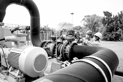 为确保汛期安全环保生产,扬子石化水厂早计划、早准备,从人员、物资、预案等方面做好全方位落实,开展汛期安全生产专项检查和隐患排查治理,实行24小时值班制,严密监控雨水池水位和马汊河排口情况,保证雨污分流设施完好,切实做好雨天的清污分流。图为6月20日,扬子石化水厂班组技术人员检查污水处理装置。王艾民 李树鹏 摄影报道