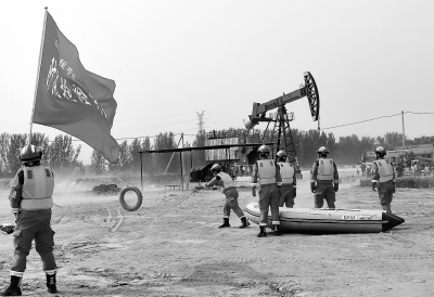 汛期以来,中原油田应急救援中心密切关注汛情、水情、雨情,分析研判防汛形势,定期开展厂区内涝、城市内涝、水上人员搜救等演练,确保迅速开展应急救援,全力保障人民群众生命财产安全和企业生产安全。图为7月3日,救援突击队员与采油厂员工在金堤河开展防汛演练。 赵奕松 摄 刘红飞 邓金玲 文