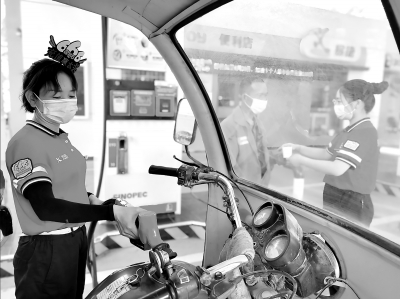 连日来,河南气温连续创同期历史新高。河南新乡石油开展向环卫、市政等露天作业人员送清凉献爱心活动,利用司机之家为环卫工人提供避暑小憩场所,为进站人员送上解暑饮品。图为近日,解放路加油站员工向环卫工人送上解暑饮料。薛宝泉 摄