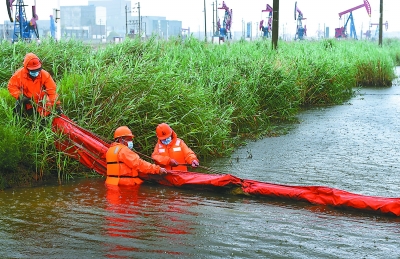 7月7日,茂名石化厂区最大降水量达190.1毫米。各级干部赶赴现场带班,基层车间启动应急预案,全力做好安全防范。其间,各装置运行平稳,未出现安全环保事件。图为该公司炼油分部员工雨中巡检。 陈寿坤 摄 张亚培 张 博 文 受“暹芭”台风影响,胜利油田7月6日出现强降水,42个采油管理区出现大暴雨,最大降水量接近200毫米。该油田提前研判、落细措施,及时进行排涝。其间,油区生产生活平稳运行。图为该油田鲁胜公司员工紧固围油栏。 朱克民 摄 王维东 文