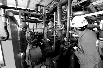 中原油田油气加工技术服务中心党委组织各基层党支部,针对生产难题“揭榜”攻关,并定期公布党员攻坚榜,激发党员攻坚热情,保障安全生产。图为7月3日,工业仪表维保项目部党员与文卫采油厂技术人员联合解决注水泵停泵问题。赵奕松 摄 杨岭敏 文