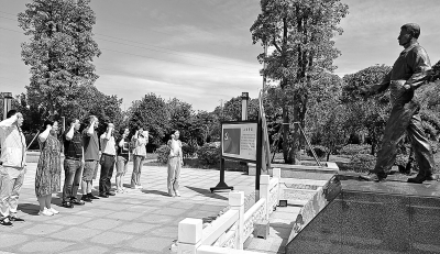 7月2日,巴陵石化行政事务中心会议中心党支部组织党员和员工代表瞻仰烈士陵园,追溯红色足迹,通过学习教育活动,激励党员干部立足岗位,多作贡献。 彭 展 摄