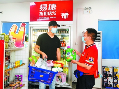 近日,浙江石油打造的首家易捷临期商品折扣店在嘉兴石油海宁新仓加油站正式开业。店内所有商品根据保质期区间打折销售,受到客户欢迎。自开业以来,该折扣店日均营业额不断攀升,为销售企业探索易捷折扣店经营模式提供了借鉴。图为员工向客户推介打折商品。金丹红 摄