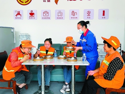 为解决户外劳动者“喝水难、热饭难、歇脚难、如厕难”等问题,黔南石油以“一个在户外的‘家’”为主题,在福泉东出口加油站打造爱心驿站,配备了冰箱、微波炉、电饭锅、电磁炉、烧水壶、沙发、桌椅、应急药箱、充电插座、书刊等。截至目前,贵州黔南石油已在福泉东出口、都匀会云桥等17座加油站建设爱心驿站。