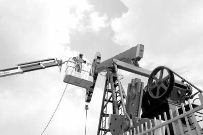 近日,胜利油田引进新型检修车,有效提高了施工效率和作业安全系数,降低了施工人员的劳动强度。一直以来,他们紧盯地面工程维修技术前沿,着眼市场需求,通过引进新技术、推广新工艺、研发新设备、应用新材料等措施,助力安全生产平稳运行。图为7月27日,胜利油田地面工程维修中心滨海机泵维修服务部运用新型检修车,维护保养抽油机。苏洪涛 摄