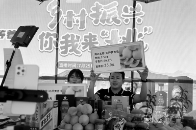 7月25日上午,贵州铜仁石油开展黄金桃直播带货。2小时的直播观看人数达1.6万人,实现销售额18万元,助力当地乡村振兴。 图1为铜仁石油黄金桃直播现场。 图2为直播当天,铜仁石油员工现场采摘黄金桃。 马志萍 摄 侯淑梅 文