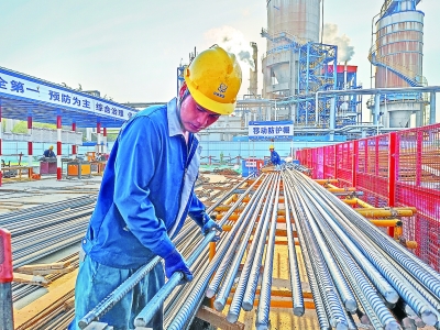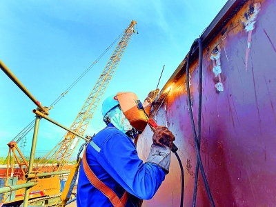 连日来,在仪征化纤300万吨/年PTA(精对苯二甲酸)项目和23万吨/年智能化短纤项目建设现场,参建人员不惧“烤”验,战高温、抓安全、保质量,推动项目建设稳步前进。面对高温天气,该公司科学调度、合理规划,严格实行“做两头、歇中间”避高温措施,积极做好防暑降温工作,保障施工人员身心健康,同时,根据高温天气安全生产特点,加强各项施工作业巡查和安全隐患全方位排查,做到早发现、早处理,及时消除施工现场安全隐患。 图1为施工人员对PTA项目主反应器氧化反应器基础环梁进行钢筋绑扎、模板支护。 图2为智能化短纤项目现场,监护人员对施工人员进行安全喊话。 图3为施工人员在钢筋车间进行钢筋加工。 图4为PTA项目现场,电焊工正在对仓储系统3万立方米PX储罐壁板进行焊接。 刘玉福 摄