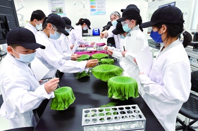 8月19日,一年一度的页岩油气富集机理与有效开发国家重点实验室公众开放日活动在石勘院举办。研究人员带领90名中小学生探寻“含油生气”的页岩世界。图为同学们在实验室研究人员指导下进行润湿性测试探索试验。本报记者 章 铮 摄 刘佳宜 文
