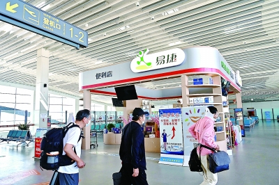 青海石油格尔木机场便利店作为国内首家机场航站楼易捷便利店,自2017年开业以来,持续从客户需求出发完善服务,主推中国石化特色商品及地方特产,满足不断增长的旅游需求,截至目前,在售商品达到800余种。图为候机乘客经过格尔木机场便利店。刘 行 摄 高国雪 李桂红 文