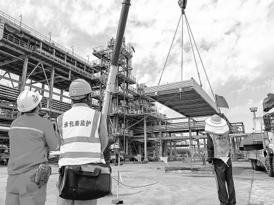 西南油气分公司在元坝气田全面停产检修技改期间,通过检修前准备、检修过程控制、检修质量检查、检修质量验收等多个环节,严格质量闭环管理,确保检修质量受控。图为8月23日,检修人员对第一联合装置开展吊装作业。刘 滢 摄 何 亮 文