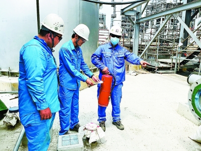 8月以来,炼化工程集团十建公司聚焦海外项目建设安全管控,采取多种有效措施狠抓施工安全,坚决做到识别大风险、消除大隐患、杜绝大事故,持续筑牢海外项目建设安全管控防线。该公司持续加大风险隐患排查力度,在海外项目具体施工作业层面做足功课,将风险隐患遏制在施工作业之前,确保中外参建员工在安全、稳定的环境中施工。图为8月14日,该项目部安全管理人员正在对施工作业一线消防设施进行风险隐患排查。 田元武 刘旭慧 摄影报道
