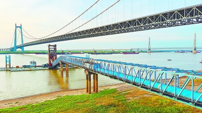 7月以来,受持续高温天气影响,岳阳城陵矶水位降至30年来历史同期最低。为做好外采到港煤炭接卸工作,巴陵石化煤化工部供煤车间提前对洞庭湖畔七里山卸煤码头趸船周围的淤泥进行清理,并严格按流程优化操作,及时接卸每一船到港煤炭。截至8月中旬,已安全平稳接卸煤炭超过36万吨。图为停靠在七里山卸煤码头的货船正在等待接卸。彭 展 摄
