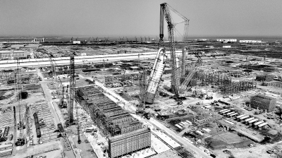 9月13日,天津南港乙烯项目乙烯装置急冷油塔安全吊装至指定位置,顺利吊装就位。急冷油塔吊装是南港乙烯项目大件吊装重量最大、起吊过程最复杂的设备吊装作业。至此,乙烯装置6台大型核心设备全部吊装就位,比原计划提前17天,创造了同类装置吊装时间最短纪录。图为吊装现场。董 波 摄 张训棣 文
