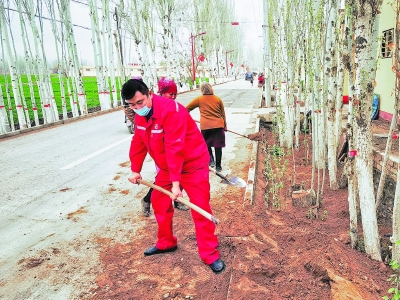 侯强(左一)带领在村党员干部开展人居环境整治工作。
