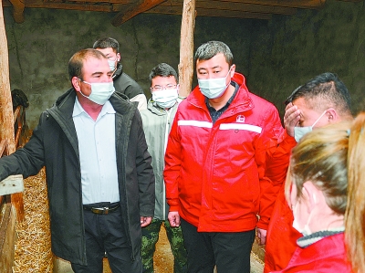 侯强(左四)带领党建“导师团”在农户家研究“上养鸽子下养羊”项目。