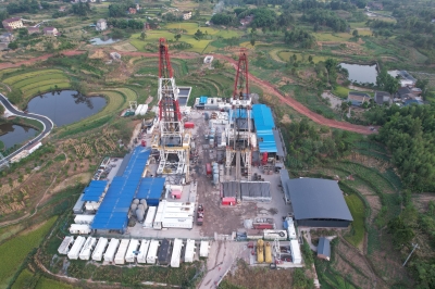 华北石油工程西部分公司在重庆页岩气勘探开发中,采取“433”工作法,即通过运用“四新”(新技术、新工艺、新设备、新材料),夯实“三基”(基层建设、基础工作、基本功训练),规范“三标”(标准化班组、标准化现场、标准化岗位),有效提高了现场安全管理水平,今年以来刷新页岩气施工两项区块纪录。图为该公司承钻的足203H4平台开足马力生产。张 均 摄