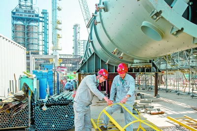 扬子石化炼油结构调整项目是中国石化重点工程建设项目,包括新建260万吨/年渣油加氢、280万吨/年催化裂化等8个重点项目,对优化产业结构、带动周边产业链提档升级、助力区域转型发展具有重要意义。自去年5月28日开工后,参建各方密切合作、稳步推进项目建设,截至目前,已经完成土建基础施工,全面进入设备安装关键阶段。图为施工人员在设备安装前进行检查。李树鹏 摄 玉晨雪 文