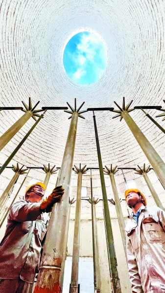 天津LNG接收站3号火炬燃烧塔高35米、直径10.6米,为瓦片式筒体结构,内衬为陶瓷纤维大模块,采用不锈钢错钉固定,并在中间压缩铺衬补偿条,以实现最佳的绝热效果。该塔自2021年4月13日开始桩基施工,于今年4月20日完成火炬设备安装,截至目前,配套的工艺、结构、电仪等均已完成施工,计划供暖季前投用。