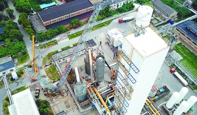 8月中旬起,金陵石化水煤浆装置开始历时40余天的设备大检修。该装置空分纯化器R02首次更新,高21米、直径4.8米、重90吨,吊装难度大、风险高。为此,该公司各部门多方联动,精心制定施工方案,严格落实各项安全措施,克服吊装场地小、跨管廊作业等困难,顺利完成吊装任务。图为空分新纯化器吊装现场。 张 兴 摄