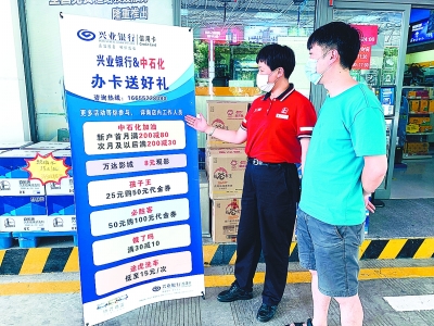 近日,安徽蚌埠石油与兴业银行联合开展营销活动。活动期间,新办理兴业银行信用卡的客户首次可领取两张加油优惠券,以后每月可领取一张满200元减30元的加油优惠券。此外,当场办理兴业银行信用卡的客户还可额外获赠燃油宝、卓玛泉等价值50元的商品,受到欢迎。 杨 芳 闫攀登 摄影报道