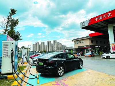 近日,贵阳石油为完善加油站服务功能,联合中国南方电网,在北京西路站新建新能源充电桩。据了解,该站加油区域与充电区域相对独立,支持扫码充电、即插即充,并为客户提供快餐、咖啡、手机充电、简易维修工具等,受到好评。图为车辆在北京西路站充电。 郑秀芳 摄