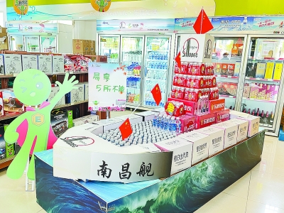 地点:江西南昌石油长堎大道加油站 堆头名称:易享节南昌见 造型寓意:将卓玛泉、长白山天泉等饮品摆放成南昌红色景点“南昌舰”的造型,以南昌特色迎接南来北往的顾客。“南昌舰”与“南昌见”同音,寓意南昌石油与顾客相约易享节,我们南昌见。熊丽萍 田昕雨 摄影报道
