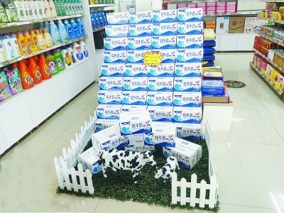 地点:广西来宾石油金秀县城加油站 堆头名称:青青牧场“我”的家 造型寓意:将易享节主推商品来思尔纯牛奶层层堆高,高山一般的气势让客户进店能注意到。“山脚”下的青青牧场里,奶牛妈妈带着宝宝在嬉戏,既充满童趣,又展示了牛奶产自绿色自然的生态环境。潘国秋 陶 臻 摄影报道