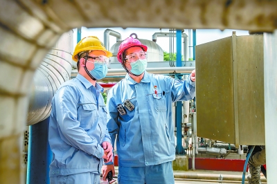 日前,扬子石化芳烃厂一氧化碳装置成功实现大修后首次负荷提升标定,转化负荷、回收界外二氧化碳均达到理想标准,标志着一氧化碳装置性能得到有效恢复,为下一步高负荷安稳生产、优化产品结构、回收利用二氧化碳等提供了强有力的技术支撑。图为装置管理人员现场优化技术参数。李树鹏 仇中越 摄影报道