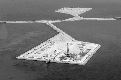 图为沙特阿美公司位于朱拜勒的玛尼法海上油田。
