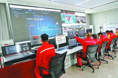 新东营原油库管控中心里,员工远程启动阀门,原油库投产进油。