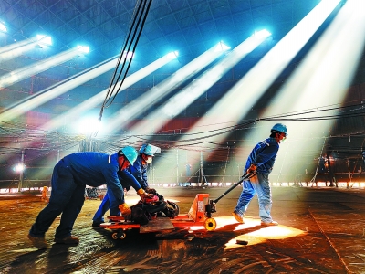 仪征化纤300万吨/年PTA项目是中国石化和江苏省的重点工程项目。日前,该项目施工人员正全力做好原料罐罐体施工。本报记者 刘玉福 摄