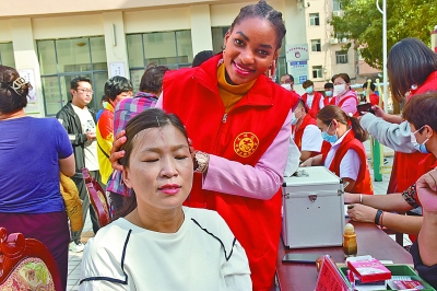 韩学忠 图/文 近日,来自坦桑尼亚的伊丽莎白,穿着红马甲走进中原油田街道办添运社区,用学到的中医针灸、推拿按摩技术为居民义诊。 伊丽莎白3年前嫁给在坦桑尼亚工作的中原油田小伙儿,去年随丈夫来到中国。由于热爱中国的中医学,她今年3月拜“中国好人”、“河南好人”、中医按摩医师王永甫为师,学习中医针灸、推拿按摩、刮痧等知识和技能。 伊丽莎白肯吃苦、善钻研、勤动手,如今已基本熟练掌握中医针灸、推拿按摩技能。 最近,伊丽莎白加入了“王永甫爱心志愿服务队”,经常到社区、村庄、养老院、日间照料中心,用一技之长为居民、老人义务服务。她每到一处义诊点,都会引来很多人合影。伊丽莎白总是满面笑容,用流利的中文和人们交流。她的师傅王永甫说:“伊丽莎白聪明、勤奋、心细,敢下手,进步特别快。” “我是外国人,但不是外人!开展社区公益活动,建设美丽家园、幸福家园,我也要出份力。”伊丽莎白说。