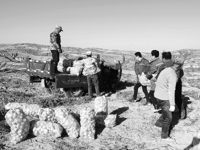 山西大同市自10月11日实施静默管理,山西石油紧急安排岢岚县驻村工作队从农户地头收购1万公斤土豆,运往大同市,送给封控区内的市民。图为10月26日,山西石油员工在地里收购土豆。 秦晓耕 摄 梁永卿 文