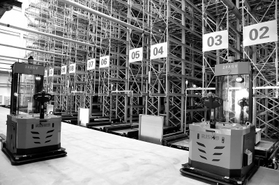 11月8日,镇海炼化采购中心公用仓库智能立体库正式投用1个月,极大提高了仓储效率。该立体仓库为中国石化最大的备品配件标杆立体仓库,采用智能化出入库管理。仓库在WMS(仓库管理系统)的控制下,通过与物资域、维保库软件系统集成,实现备品配件的入库、库存管理和出库功能。图为AGV机器人作业现场。何 雯 摄