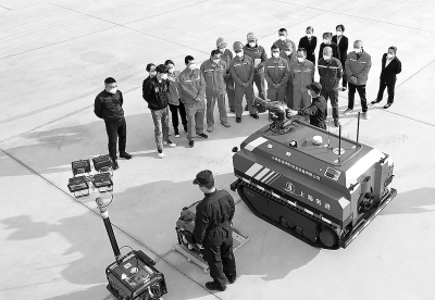 今年11月9日是第31个全国消防日,西北油田治安消防中心开展“119”消防宣传活动。消防专业人员向岗位员工发放消防口袋书,讲解油气生产场所消防安全知识、消防器材的使用方法。图为11月9日,消防员为厂站员工讲解消防机器人操作方法。石书锋 摄