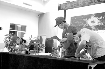 安徽六安市高皇石化学校学生在荆门石化智慧小课堂上组装“磕头机”。 田 林 摄