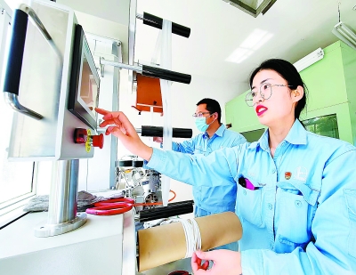 员工在做吹膜试验。
