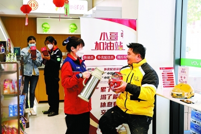 于 慧 王 磊 初冬时节,北京的清晨寒意浓浓。 每天早上8时,外卖小哥小雷准时起床,换上工作服、戴上口罩,给电动车、送餐箱做好消毒,上线打卡接单,开始一天的工作。接单、取餐、量体温、消毒、装箱、配送……一个上午,小雷马不停蹄地赶往不同的目的地。 11月13日下午2时10分,小雷走进位于通州区潞苑南大街的中国石化京教加油站,像往常一样来到休息区,拿出自带的方便面,准备开始午餐。“小雷来啦,这是新烧的热水,用这个泡面吧!”站长常文静热情地拿着热水壶跟小雷打招呼,并递给他一根火腿肠。 说起小雷和中国石化加油站的缘分,源于今年9月的一天中午。那天,小雷在送餐的路上,突然发现电动车的轮胎没气了,周围又没有任何维修点,这可愁坏了小雷。这时,他想起附近有一座中国石化加油站,于是抱着试一试的心态来到加油站求助。 在加油员的帮助下,小雷迅速地给轮胎充好了气,然后头也不回地跑了。一个小时后,送完外卖的小雷又专程回到加油站,向站长常文静和加油员表示感谢。 “不用客气,我们这是‘小哥加油站’,专门为你们户外工作者提供轮胎充气、手机充电等免费服务,里面还有休息区,以后要是累了,就来这儿歇一会儿、喝口热水吧!”常文静说。 自此,小雷就经常到京教加油站休息,同时还当起义务宣传员,向身边的骑手朋友推荐“小哥加油站”。一传十,十传百,来加油站休息和充电的“小哥”越来越多。 “有了‘小哥加油站’,再也不怕寒冬里没地方喝水暖身了。有时候渴了,手机没有电了,来这里喝口水,给手机充会儿电,就会觉得很温暖。”另一名骑手小赵感慨道。 今年9月21日,北京石油30座“小哥加油站”在通州正式揭牌。加油站免费为快递、外卖骑手等户外工作者提供雨衣、雨伞、急救药等物品,并专门设立临时休息区,免费提供热水、饭菜加热等服务,极大方便了快递、外卖骑手群体。自投用至今,“小哥加油站”累计为两万多人次提供服务。