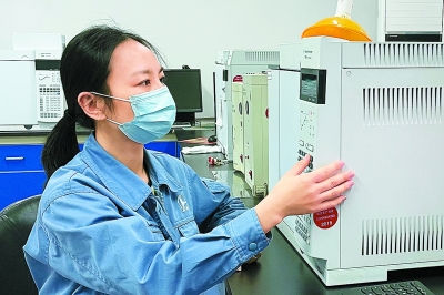 | 张桂琴在实验室利用色谱仪分析采样。 沈献红 摄 |