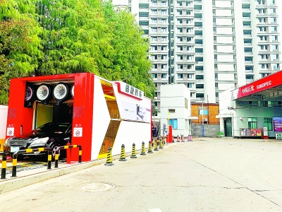 浙江石油积极探索自建自营洗车经营模式,11月17日,在温州平阳南雁加油站,投运首座自建自营“易捷养车”智能无人隧道洗车机。图为洗车现场。廖卫东 摄