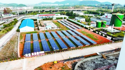 11月21日,安徽宣城石油巷口桥油库光伏发电项目通过生态环境部南京环境科学研究所碳排放检测认证,并网运行,标志着安徽石油首座碳中和油库正式投运。 该油库利用5100平方米地块安装972块光伏板,年发电量达41.46万千瓦时,在满足油库正常生产、生活用电需求的同时,余电可与国家电网无间断切换实现外供。图为巷口桥油库光伏发电项目。 高思聪 摄 孙宗奎 文