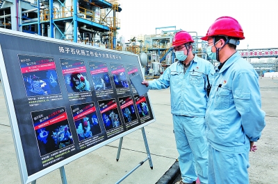 近日,扬子石化发布“施工作业十大黑名单行为”条款,通过展板、卡片、橱窗等方式进行广泛宣传,并根据条款规定严格进行现场监管,确保安全生产相关规定入脑入心。图为员工认真学习“施工作业十大黑名单行为”条款。达 军 摄