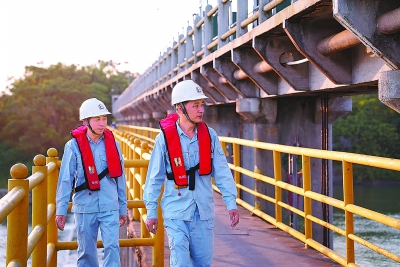 柯裕清/图 张亚培 张木旺/文 11月的茂名,虽是初冬却温暖如春。茂名工业引水渠一望无际,清澈的渠水一路欢歌,滋润两岸农田,奔向茂名石化炼油厂区及附近企业。 茂名石化水务运行部水渠员工走在巡检路上,听一听水声,查看一下设备,用对讲机与操作工沟通工作,遇上村民也会聊上几句。 这样的情景,每天都在重复。 蜿蜒曲折的茂名工业引水渠,全长22.47公里,已经安全环保运行62载。为守护渠水安全,茂名石化在工业引水渠沿线设置7个管理站,每个管理站配员六七人,每个管理站管理河段为3至4公里。 “保水就是保生产,保水就是保民生”。一代代的水渠员工以小站为家,风餐露宿,24小时巡查水渠沿线及设施维护,清理河道水浮莲,修补坑洼河堤路面,及时制止沿渠违章搭建、村民乱丢垃圾杂物等行为,确保工业引水渠安全、干净、畅通,把工业引水渠打造成了河畅、水清、岸绿、景美的生态水系。 今年7月7日,百年一遇的特大暴雨来袭,工业引水渠大山岭渡槽告急。严重影响水渠生态和过流量的水浮莲数量暴增。水渠员工冒着暴雨直奔现场,想方设法将密密麻麻的水浮莲打捞上岸。经过一个多小时的奋战,渡槽口的水浮莲全部被清理掉,水渠供水流量恢复正常。大家上演了一场暴雨中的“最美逆袭”。 “水渠流淌60多年,养育了几代茂名人,也灌溉了两岸几十万亩的农田。”公馆镇东华岭村老人柯火生深情地说。 一滴水,连着工农心。水渠路线长,且均为敞开式明渠,管理难度非常大。水渠员工常态化开展“保护水资源、送法进乡村”普法活动,引导村民共同保护水资源。他们深入田间地头了解农田用水情况,在确保炼油生产正常用水的基础上,科学做好水量调配,全力满足水渠沿线农田春耕灌溉用水。茂名石化还给水渠两岸陆续铺上1万多米长的硬底化路面,先后为附近村庄建起了新桥,解决了村民出行难题。 河堤路好走,桥梁易通行,耕种有人帮。工业引水渠也成为企地和谐共建的桥梁和纽带。 62载,守渠人扎营荒野,尽心尽责,继续守护流水潺潺……