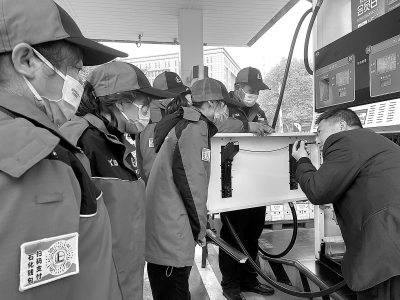 为提升一线员工职业素养,近日,贵阳云岩石油开展面对面教学培训。他们制定日常巡检路线图,带领加油站员工开展风险隐患排查,进行“手指口述”操作实操培训、事故案例分享。图为专家为加油站员工讲解加油机维护保养方法。熊齐扬 摄