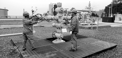 12月8日,中国石化西南地区首个储气库——清溪储气库正式开井采气。中原油田普光分公司超前部署,深入开展隐患排查和设备维护保养工作,确保储气库按计划平稳采气,切实保障川东北地区冬季天然气平稳供应。图为操作人员进行开井采气作业。姜景耀 摄 郭 华 文