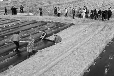近日,化销江苏在南京溧水举行百亩级可降解地膜油菜田铺膜试验,为作物铺设可降解地膜。此举拓展了可降解新材料应用场景,可抑制田地杂草,减少农药、化肥使用,提高亩产量。图为可降解地膜油菜田铺膜试验现场。 徐 捷 摄 赵宝丽 李 伟 文