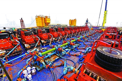 今年以来,胜利油田持续加大油气勘探开发力度,截至12月23日,取得“3个勘探突破、4个商业发现、2个新进展和1个好苗头”成果,新增探明储量完成计划的101%、新增控制储量完成计划的170%、新增预测储量完成计划的6.2倍。图为河口采油厂对渤南油田新井实施大型增油压裂施工。吴木水 摄 王维东 丁 洁 文
